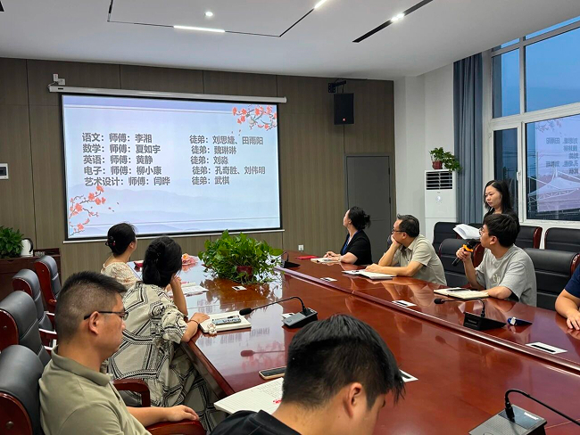 为助力青年教师快速成长,学校精心挑选了一批经验丰富的骨干教师作为师傅,与充满活力的青年教师结成对子。廖航宇老师宣读了师徒结对名单,涵盖了语文、数学、英语、电子专业以及艺术与设计等多个学科领域。随后,师徒双方签订了《“青蓝工程”师徒结对协议书》,并互赠信物,定格了这一意义非凡的时刻。这一环节不仅象征着责任的传递,更寓意着教育薪火的生生不息。