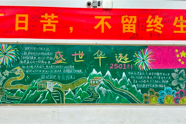 25012501班的黑板报以强烈的视觉冲击力和适中的文字搭配吸引眼球。主视觉图画极具冲击力,板书内容与主题表达相得益彰。评委肯定其“主题画突出,文字搭配得当”,同时建议加强绘画细节的精细化处理,优化色彩搭配,以增强板报的感染力。本次黑板报评比不仅是一场艺术竞技,更是一堂生动的爱国主义教育课。学生们通过创作,重温抗战历史,感悟红色精神,将“争做时代新人”的信念融入作品之中。学校未来将继续以多样化活动为载体,推动红色教育入脑入心。