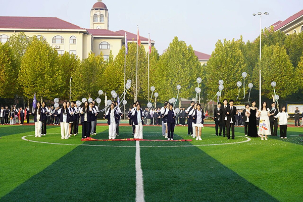 袁凌峰副校长在开幕词中强调:"体育是青春最好的注脚,更是奋斗者最亮的勋章。"李校长亲自宣布运动会开幕,全场掌声雷动。运动员代表谢子轩同学以铿锵誓言诠释拼搏精神,裁判员代表罗颖怡老师则郑重承诺坚守公平公正底线。