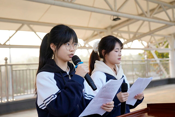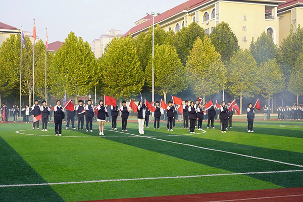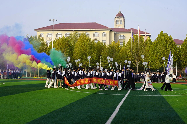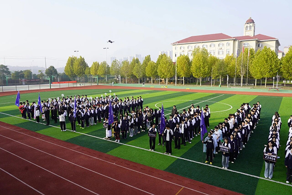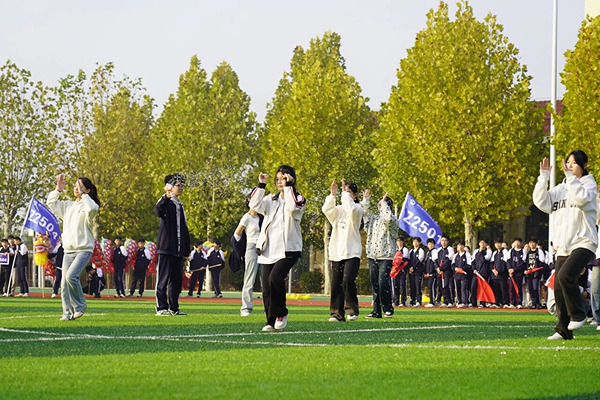 袁凌峰副校长在开幕词中强调:"体育是青春最好的注脚,更是奋斗者最亮的勋章。"李校长亲自宣布运动会开幕,全场掌声雷动。运动员代表谢子轩同学以铿锵誓言诠释拼搏精神,裁判员代表罗颖怡老师则郑重承诺坚守公平公正底线。
