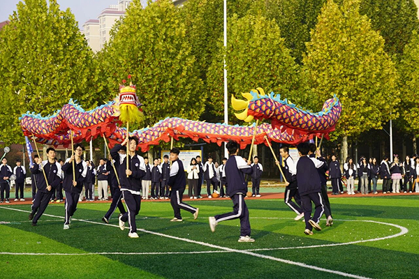 精彩瞬间SPORT各班级方阵以创意表演展现班级风采:2501班旗舞方阵演绎《精忠报国》,红旗翻飞间尽显赤子之心;2401班舞蹈串烧融合传统与现代,步履生风;2504运动训练班带来的舞龙舞狮表演更将传统文化与现代体育完美融合,金鳞翻腾处,尽显中华神韵。