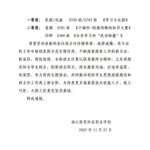 湘江商贸科技职业学校此次班会公开课竞赛的成功举办,不仅提升了班主任队伍的专业化水平,也促进了学生核心素养的全面发展。